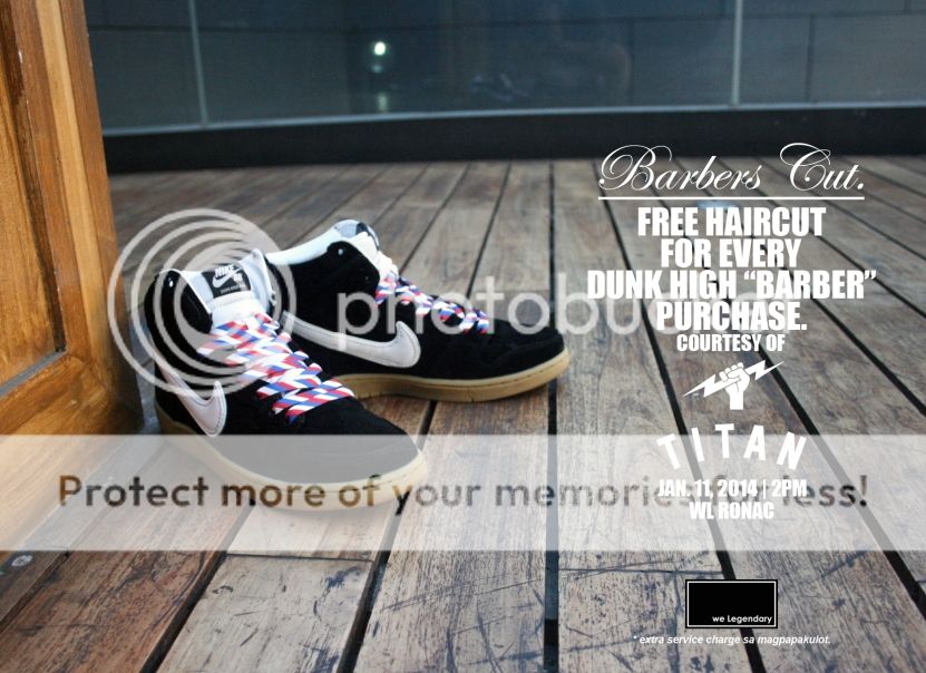 we Legendary's first offering for 2014! Check out the rich black suede uppers, white Swoosh and sexy gum outsoles. Every pair entitles you to a free snip at Titan Barbershop. Now that's a double treat! (don't forget to tip after)